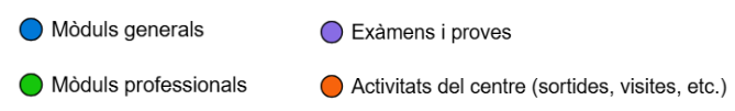 En aquest calendari s’inclouran totes les entregues de tasques, exàmens, activitats del centre i sortides que afectin el grup.