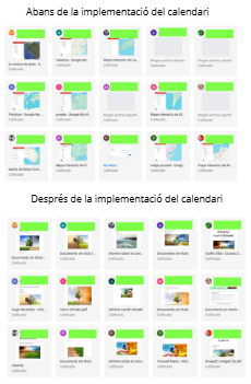 La proposta s’ha implementat, en línies generals, tal com es va descriure en el moment de planificar-la. No obstant això, durant la seva aplicació es va detectar que el codi de colors previst inicialment no era funcional, ja que els colors assignats al calendari només eren visibles per la persona creadora i no per l’alumnat, fet que en limitava la utilitat i la coherència visual. Per aquest motiu, es va optar per substituir-lo per un codi d’icones, molt més accessible i fàcilment identificable per tot el grup.