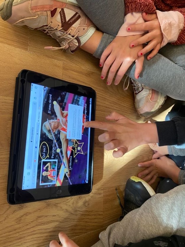 Presentació de diferents reptes en diferents nivells de realització on es plantejaran tasques tan individuals, com per parelles i finalment de tot el grup. S’oferiran en diferents nivells per tal de fer una proposta que s’adapti a les necessitats de cada infant (DUA). Un cop superat aquests reptes, l’alumnat rebrea un codi QR on els redigiran a una imatge interactiva on es presentarà l’atleta de la disciplina que els ha tocat fer-se experts i allà hauran de visualitzar els vídeos, canalitzar i comprendre la informació per posteriorment realitzar la técnica de l’especialitat corresponent.