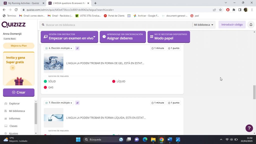 Per tal d’avaluar el projecte de l’aigua he utilitzat l’aplicació Quizizz.
