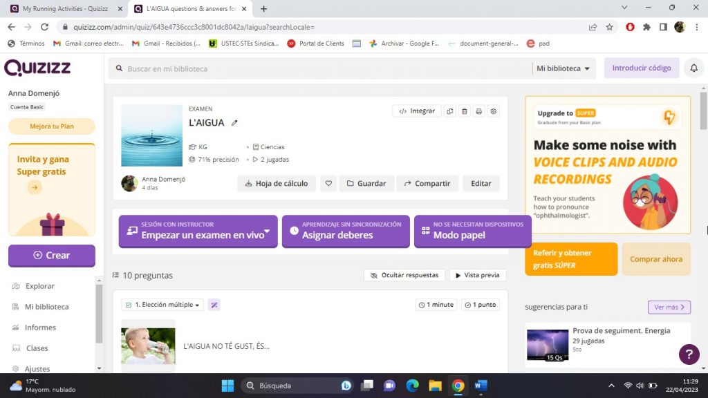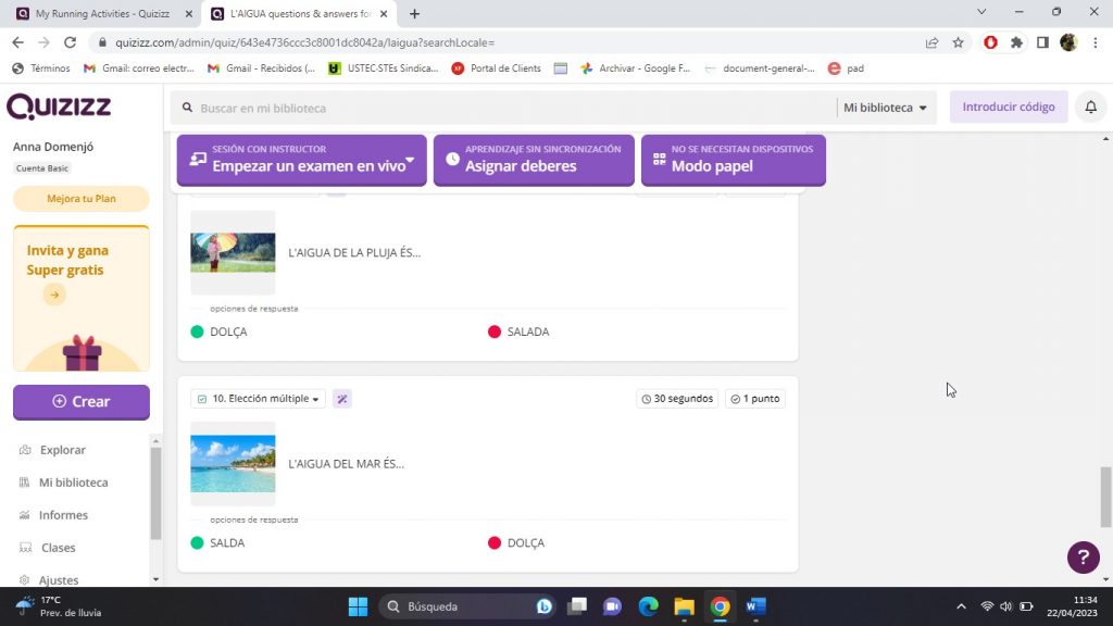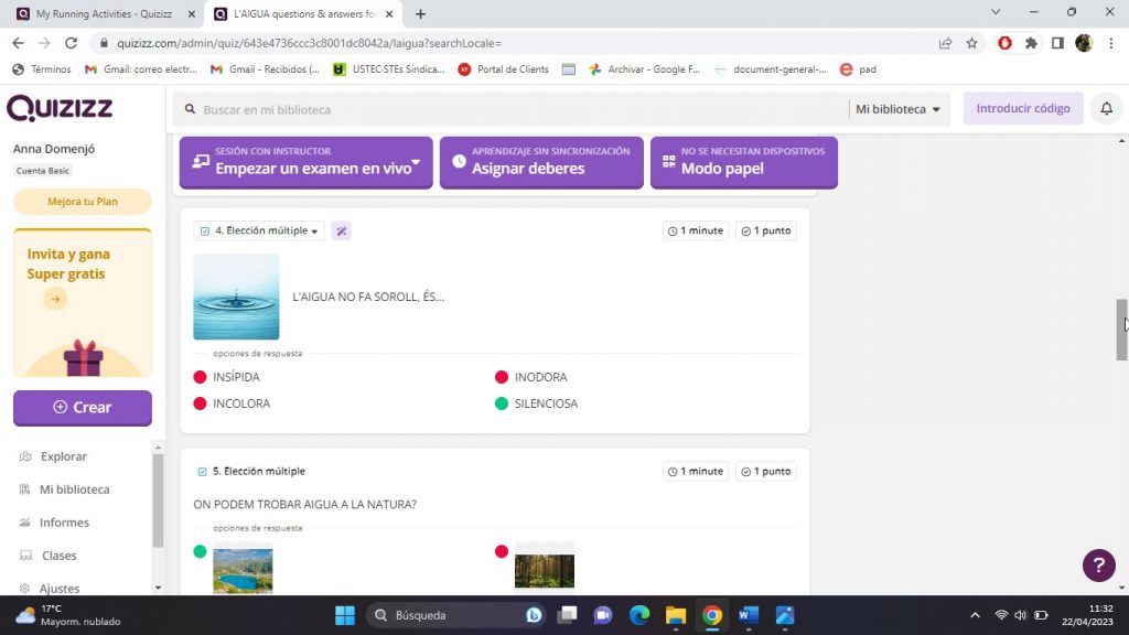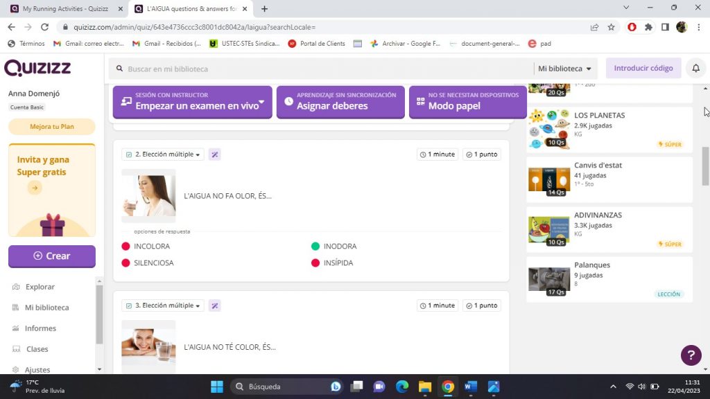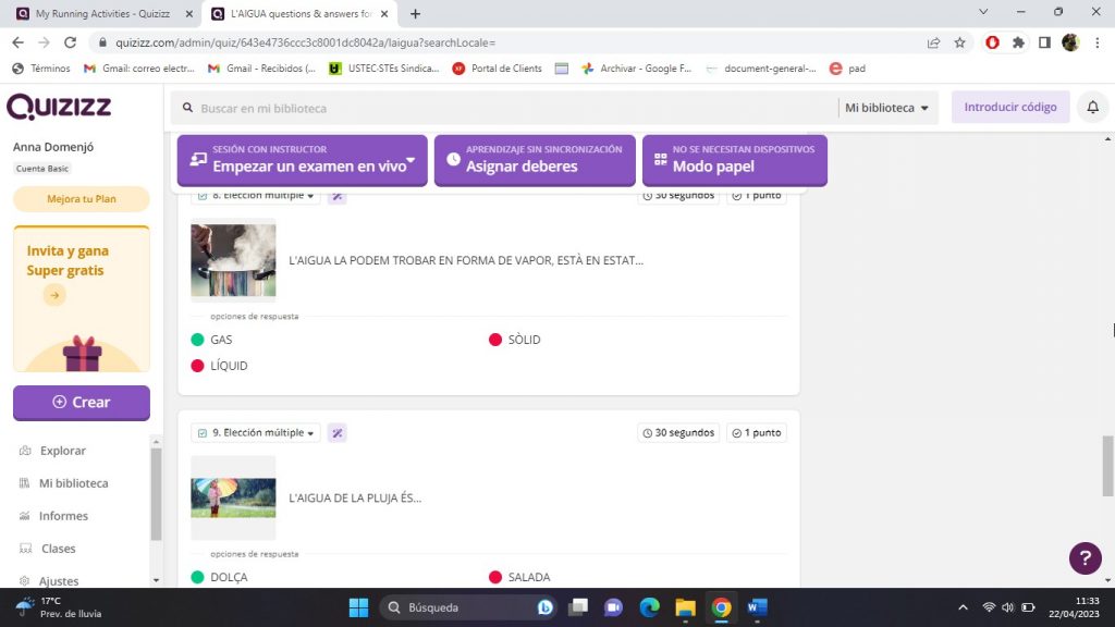 Per tal d’avaluar el projecte de l’aigua he utilitzat l’aplicació Quizizz.