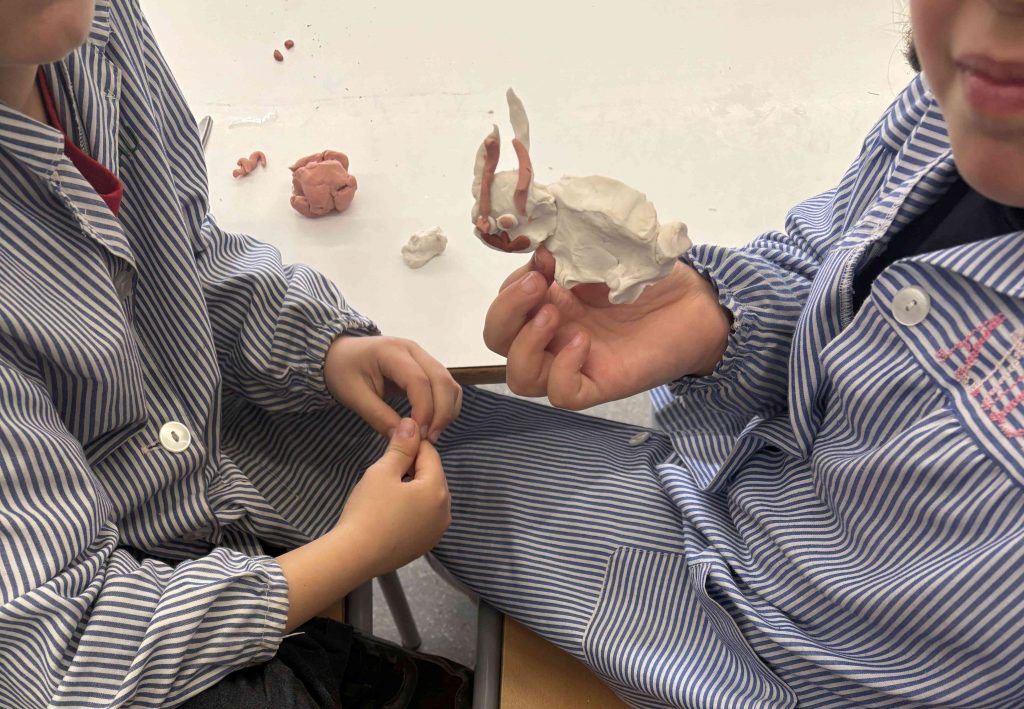 - Agafa una bola de plastilina blanca i fes el cos del conillet.