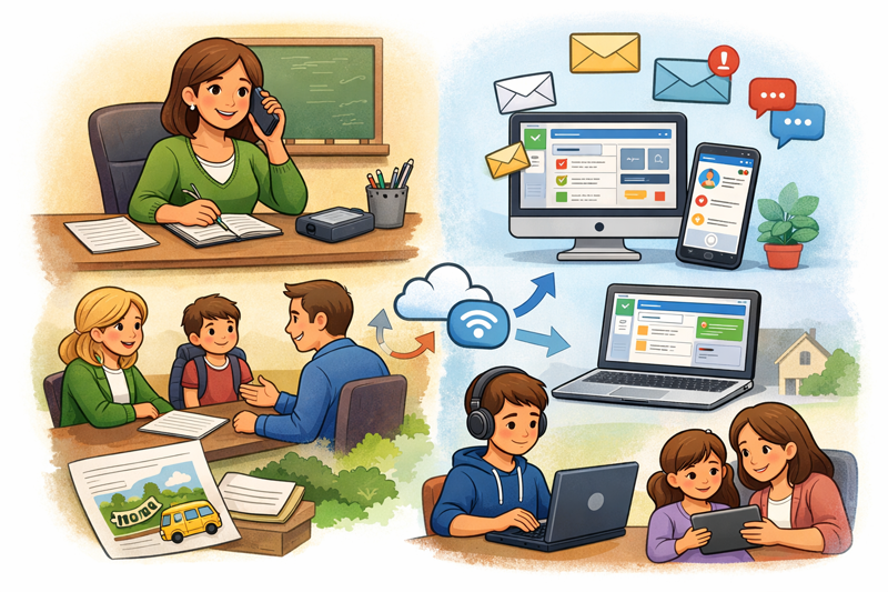 Al meu centre, segons tinc entés, la comunicació amb les famílies es fa principalment a través de trucades de telèfon i de reunions presencials. Tot i que no soc tutora, sé que els tutors contacten amb les famílies telefònicament per concertar reunions, especialment durant el primer trimestre, amb l’objectiu de conèixer-se. A més, si hi ha algun problema o situació concreta a comentar, es poden fer reunions addicionals al llarg del curs. A més, els professors de guàrida també contacten amb les famílies per telèfon quan un alumne es troba malament, per a que el vinguin a buscar.