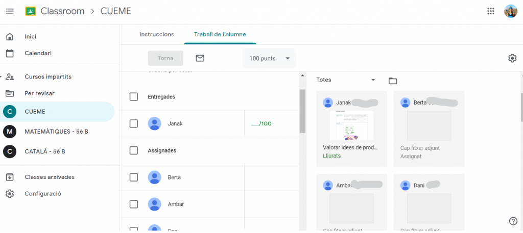 Un exemple és el treball que estem fent del CUEME a través del ClassRoom: