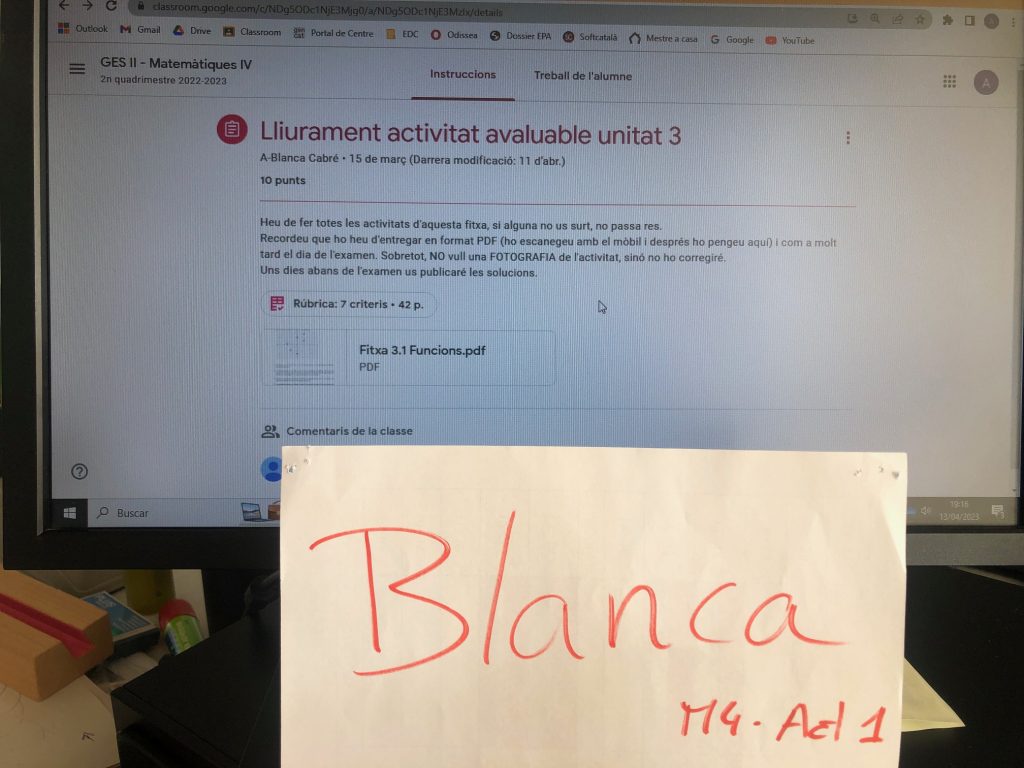 S’ha elaborat una tasca de Classroom on es demana que els alumnes resolguin equacions de segon grau, interpretin les gràfiques de funcions d’equacions de segon grau i les representin.