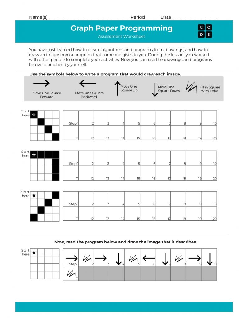 He escollit l’activitat desendollada Graph Paper Programming de la pàgina web Code.org desendollat: (https://code.org/curriculum/unplugged). Podeu trobar l’explicació i la fitxa en aquest enllaç.
