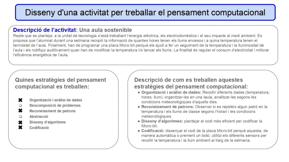En aquest bloc he dissenyat una proposta d’aula per als alumnes del mòdul de Tecnologia del GESO nivell II que busca desenvolupar diferents estratègies del pensament computacional dins del context del mòdul.