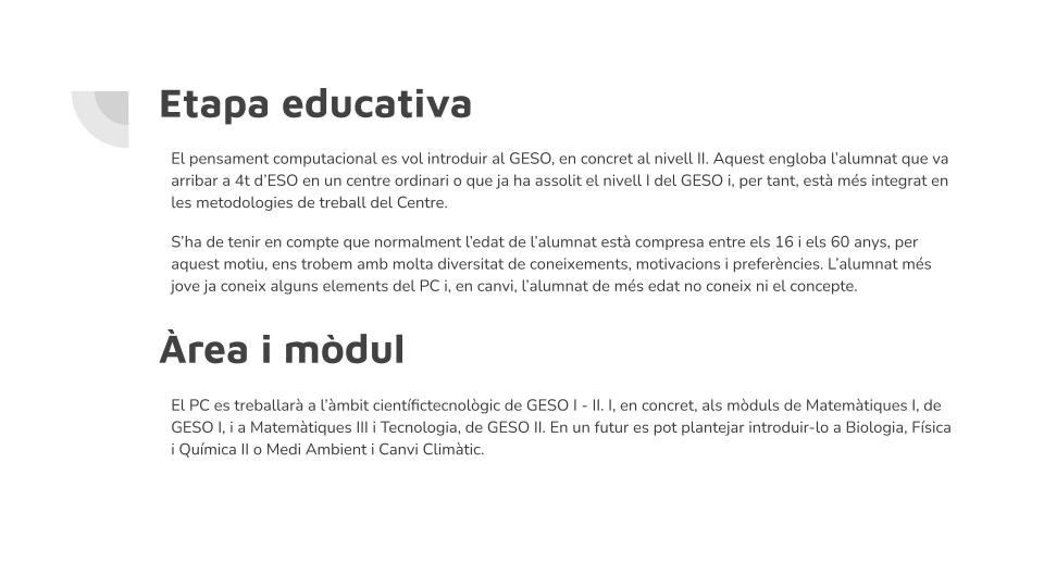 Tot i que ens queda molt camí per davant, tenim ganes d’adaptar-nos a les necessitats actuals i, sobretot, veiem una utilitat educativa en el Pensament Computacional.