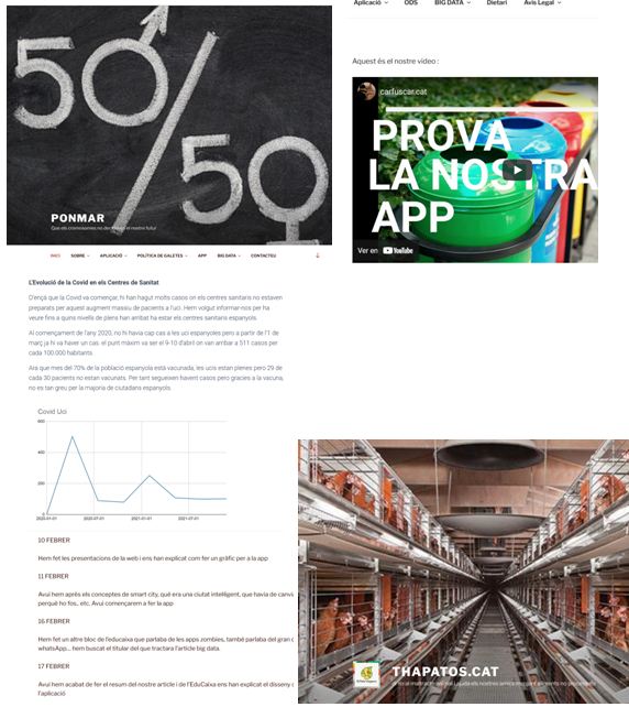 En tenim 10 seleccionades en aquesta primera fase, 8 més que l’any passat. Els alumnes de 4t d’informàtica han treballat en un domini d’una web de veritat, dinahosting, treballant com dissenyadors i administradors d’aquesta. A més, han fet servir la pàgina web amb domini .cat per a treballar els objectius de desenvolupament sostenible, han fet servir diferents idiomes, han creat vídeos, cartells publicitaris, memòries dels dissenys, presentar les seves aplicacions mòbils creades amb appinventor, etc. doneu-vos una volteta per les seves webs.cat i gaudiu del seu treball.