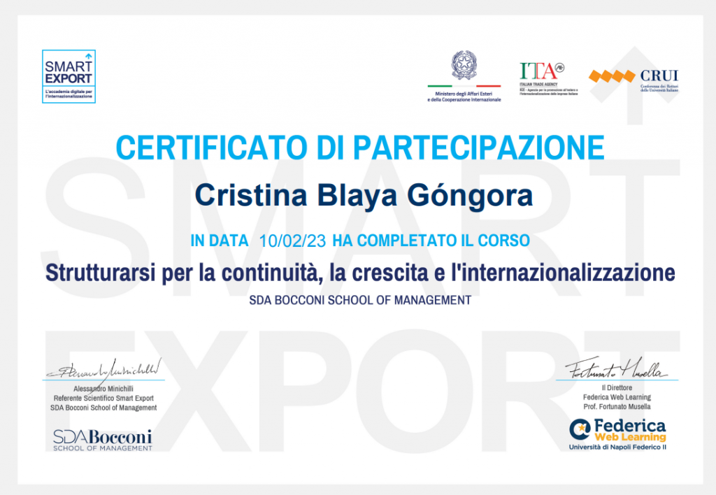 Strutturarsi per la continuità, la crescita e l’internazionalizzazione_Certificato di partecipazione