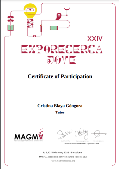 Avui he rebut el Reconeixementcom tutor de treballs de recerca. Espero el curs vinent seguir treballant en aquesta línea. Els alumnes estan molt motivats i tenen moltes ganes…