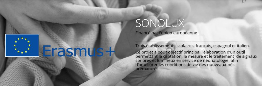 El gran objectiu de Sonolux, un projecte Erasmus, va ser promoure el benestar dels nadons al servei de neonatologia del centre hospitalari francès Yves Le Foll de Saint-Brieuc, estenent la cooperació amb dos establiments similars d’Espanya i Itàlia, recolzant-se en el treball de l’alumnat de tres centres dels respectius països. Per als estudiants implicats, el repte era resoldre tres activitats principals: