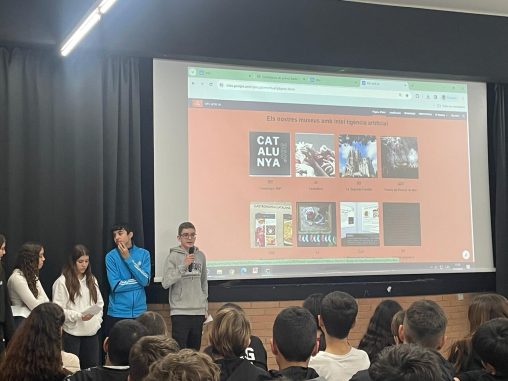Alumnes de Quart d’ESO de l’Institut Premià de Mar presenten als seus companys de Primer d’ESO els museus virtuals del projecte “Re-animar”, col·laboració entre professors d’educació visual, música i digitalització. Amb entusiasme, mostren les seves creacions i les funcionalitats interactives que ofereixen. Aquesta iniciativa fomenta la col·laboració interdisciplinària i inspira els estudiants més joves. La professora Cristina Blaya destaca el desenvolupament personal i tècnic dels alumnes. La presentació evidencia com la creativitat i la tecnologia poden enriquir l’aprenentatge, connectant els estudiants amb el món digital d’una manera innovadora.