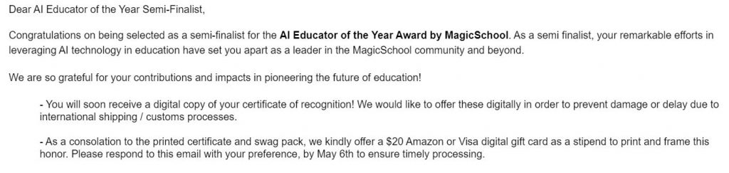 - Magic AI: Semifinalista Magic School érem 86 semifinalistes de tot el món. I ara, ja no sóc finalista. Oooohhh!