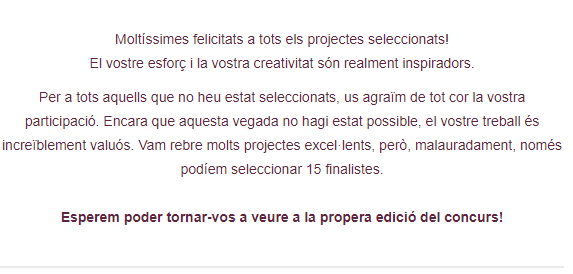 - Premis Lluís Carulla he quedat entre els 145 semifinalistes. però no en els 20 finalistes. Ohhhh!