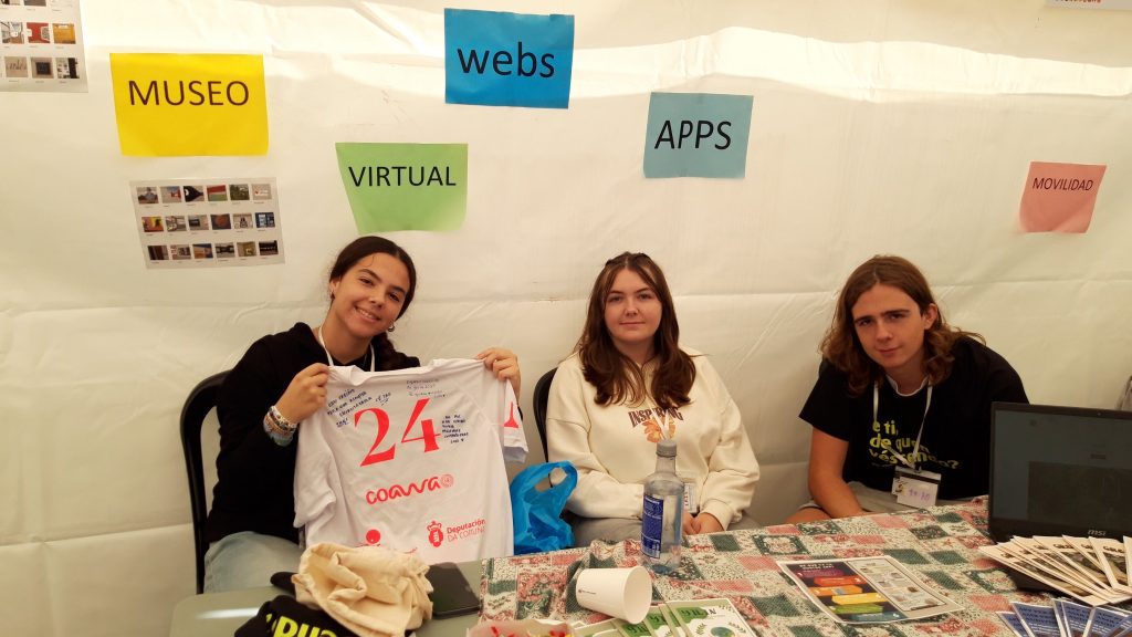 Els alumnes que l’any passat van cursar quart de l’ESO a la matèria de Digitalització: Bernat Fuster, Irene Campoy i Iris Larrotcha, acompanyats per les professores Maite Enfedaque i Cristina Blaya, han resultat guanyadors en la categoria dels Objectius de Desenvolupament Sostenible (ODS) a la fira Open Science de Cambre (A Coruña). El seu projecte, basat en museus virtuals desenvolupats amb intel·ligència artificial, va destacar i ens han convidat a altres fires al llarg del territori, i el passat 20 de setembre ens vam desplaçar fins a Cambre per presentar-lo a la fira.
