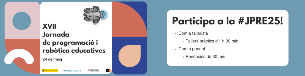 Com cada curs, l’Àrea de Cultura Digital organitza la Jornada de Programació i Robòtica educatives (JPRE) on es presenten diferents activitats (tallers, ponències, entre d’altres) de programació i robòtica per a les persones participants. Ha estat aquest dissabte 24 de maig de 2025 en horari de 9 a 17 h .