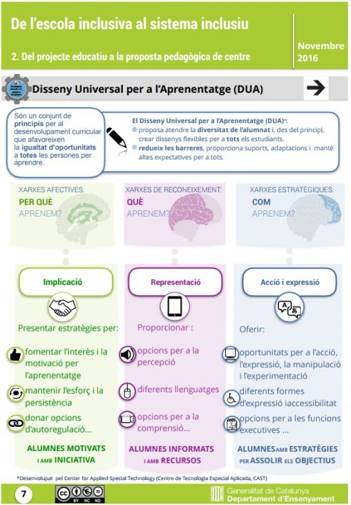 Les pautes del disseny universal per l’aprenentatge que ens aporten un conjunt de recomanacions per dissenyar materials, activitats i metodologies més inclusives per atendre tota la diversitat de l’aula.