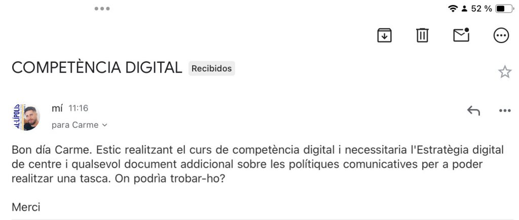 En relació a les polítiques digitals del centre, tal i com he comentat anteriorment, he utilitzat principalment aquelles que s’hi troben especificades al mateix document. Una d’elles és el correu corporatiu del centre a través del google gmail. Tant alumnes com docents disposem d’una comunitat corporativa, de tal manera que la comunicació bidireccional que es realitza és eficient i protegida. A més a més, a través d’aquest correu, l’alumnat entra a les plataformes educatives i, que en el cas del centre, cal anomenar el “google classroom” i el “moodle”. Així doncs, totes les dades personals i comunicatives queden registrades en aquesta corporació, facilitant únicament l’ús educatiu a través d’un benestar digital.