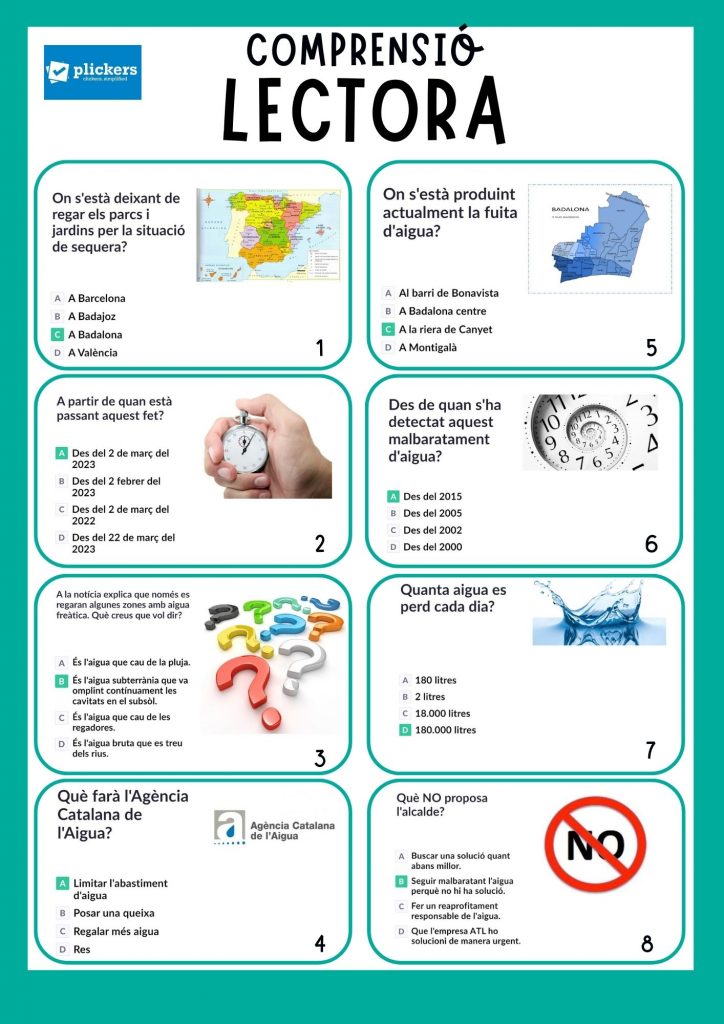 Per tal que pugueu visualitzar les preguntes fetes amb Plickers, adjunto la següent imatge on he fet un recull, ja que adjuntant l’enllaç no podríeu veure-ho per qüestió de permisos: