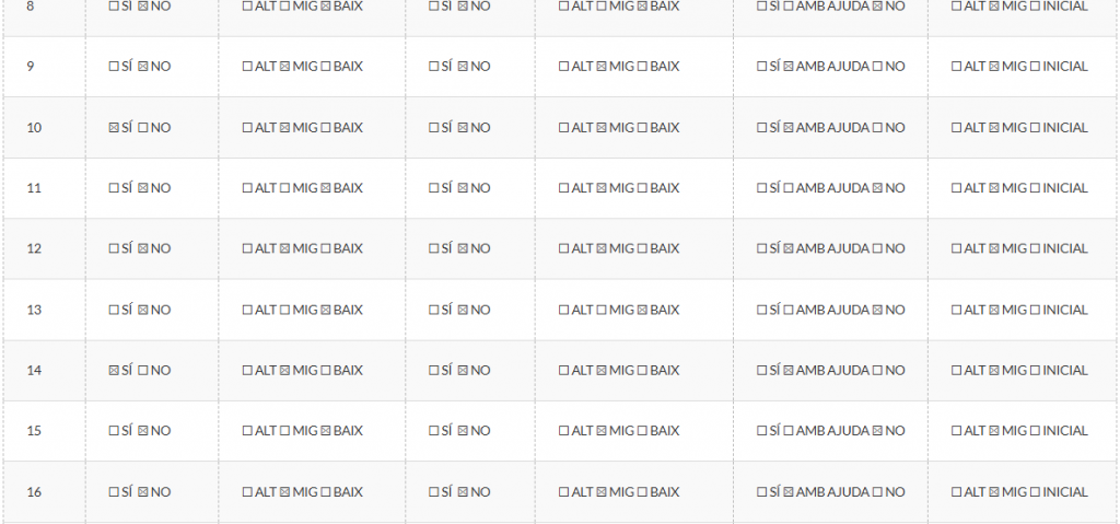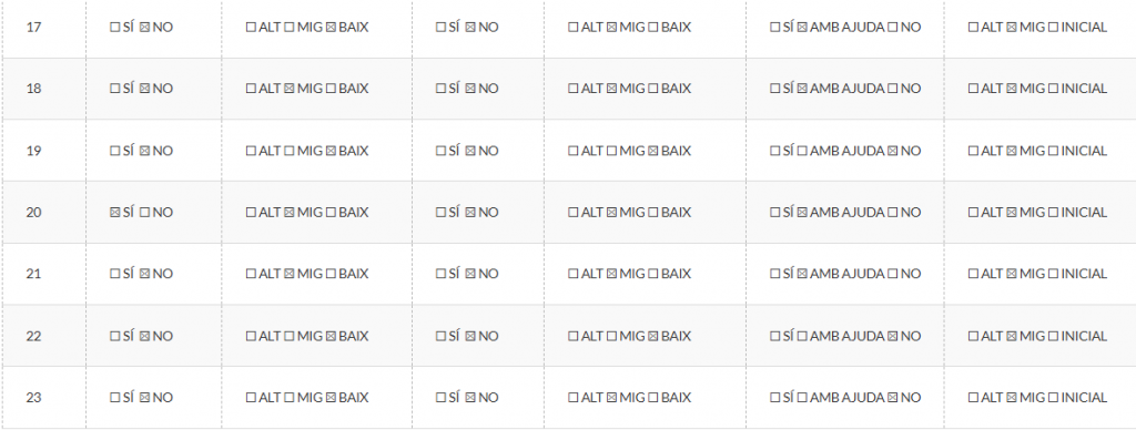 • Registre d’observació docent sobre: