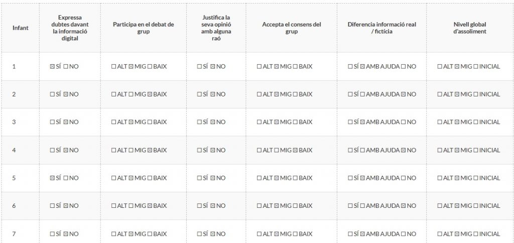Graella d’observació – Desenvolupament del pensament crític digital (I5):