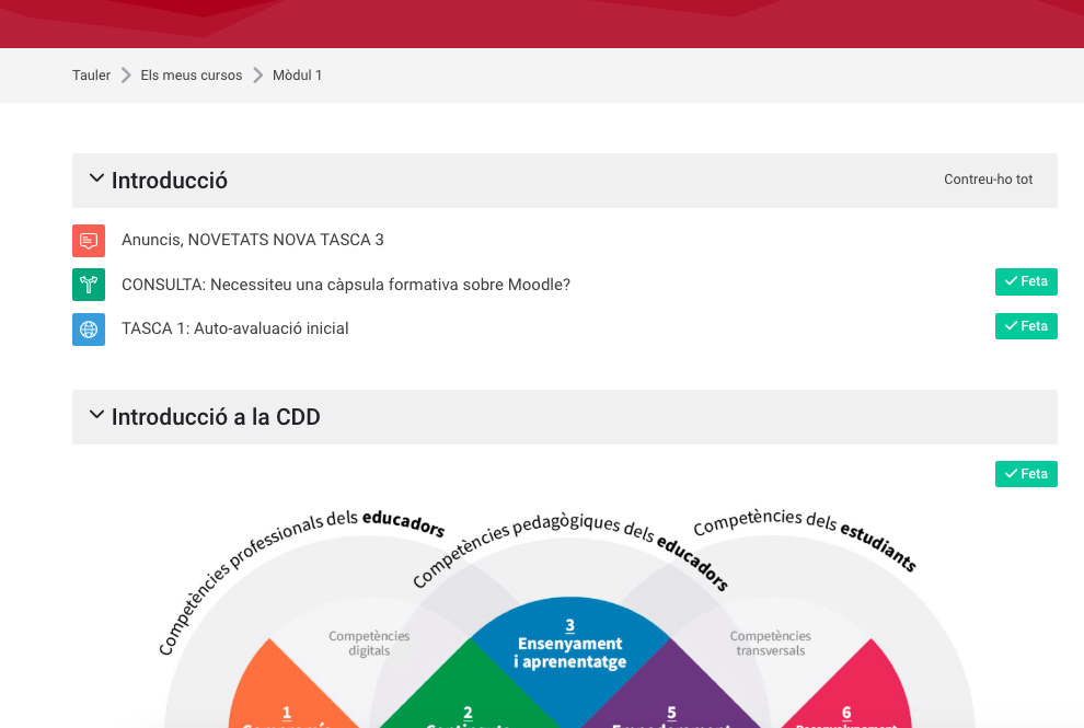 A l’inici del curs vam omplir un formulari (tasca, bloc 1) per conèixer en quin grau de la Competència Digital Docent (CDD) ens trobàvem abans de començar el curs.