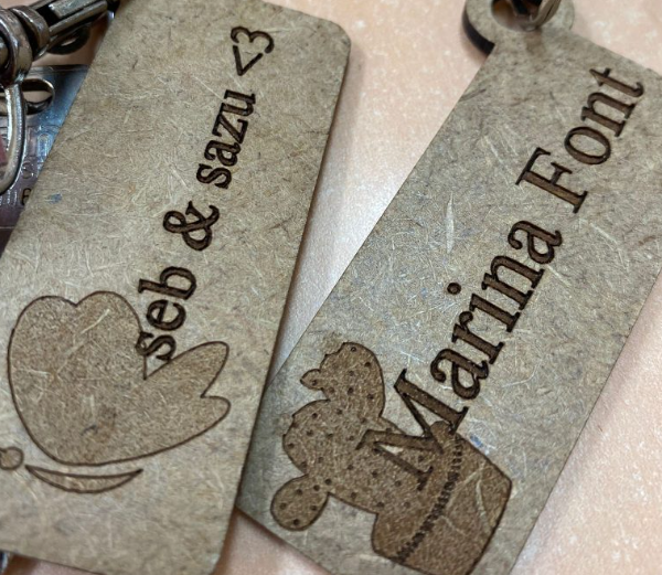 Per tal que l’alumnat veiés com funciona la talladora làser, els vam fer dissenyar a ells els seus propis clauers, primer fent un esbós i després creant un plànol amb el programar. Va ser important treballar el tipus de lletra i el gravat, com més contrast es feia amb més gravat més clar quedava el nom de l’alumne al clauer. També va ser important veure alguna incompatibilitat com per exemple portar colors per fer un gravat, podia quedar molt difús i no veure’s bé la imatge triada.
