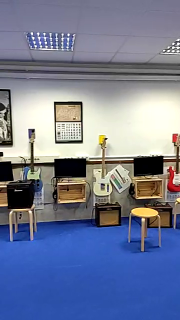En primer lloc: els alumnes que toquen la guitarra i el baix tenen connectat el seu instrument a una consola XBOX i utilitzen el joc “RockSmith” per aprendre els acords i les notes. Els teclats estan connectats a un mini PC que utilitza el programa informàtic “Synthesia” i les bateries estan connectades també a un programa informàtic: El “Drumtutor”. Els i les cantants utilitzen un karaoke simplement.
