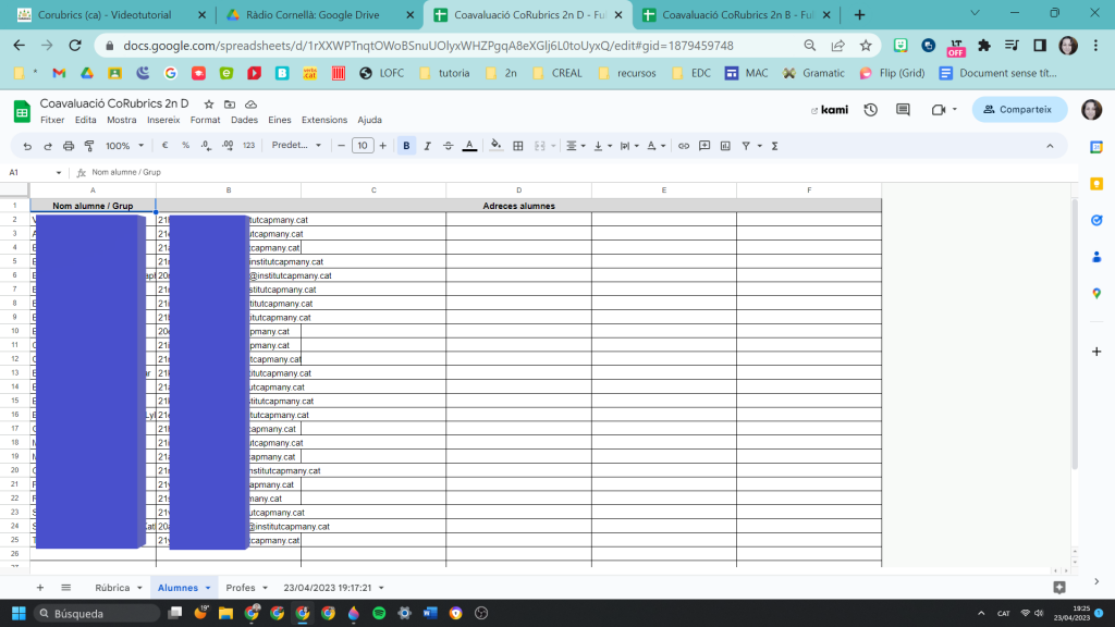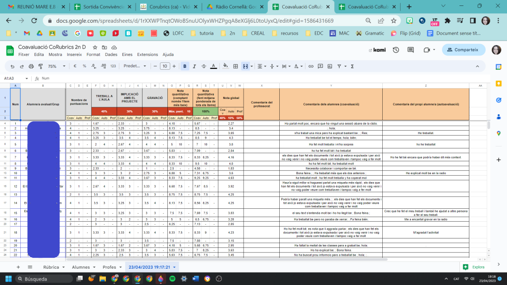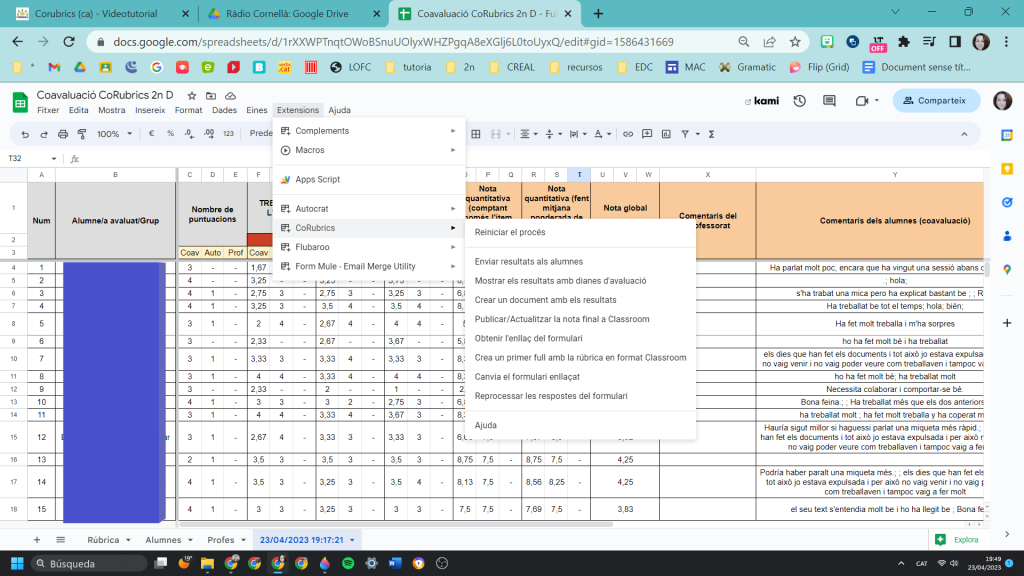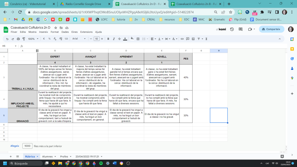 Volia millorar la manera d’extreure els resultats i de donar feedback a l’alumnat. Per casualitat, aquest any he estat formadora de la FIC de l’Estratègia Digital de Centre i un dels mòduls parlava precisament del feedback. Amb els meus companys de claustre vam confeccionar una llista d’eines per avaluar, coavaluar, donar retroalimentació, etc. Ja havia escoltat sobre el complement Corubrics, però no l’havia fet servir mai i, gràcies a aquella sessió de la FIC, em vaig animar.