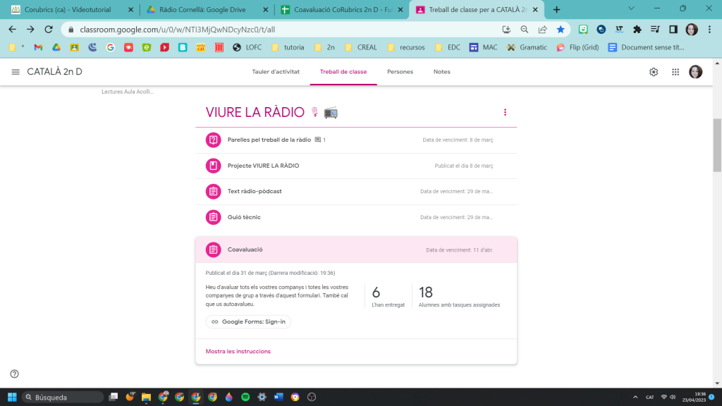 Una vegada tenim totes les dades en el Full de Càlcul, podem generar el formulari. En el meu cas, l’he enganxat a una tasca de Classroom perquè els alumnes hi poguessin accedir.