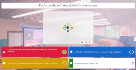 En aquest cas he confeccionat un KAHOOT. Aquest recurs interactiu que afavoreix l’autoavaluació dels aprenentatges és molt estimat entre les alumnes, però requereix sempre fer una lectura molt ràpida.