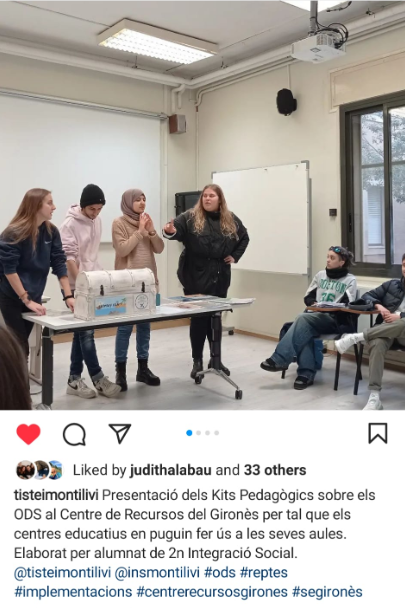 - Elaborar un material pedagògic (kit didàctic) per contribuir a la millora d’un dels objectius del desenvolupament sostenible dirigit a un col.lectiu concret i que s’implementarà en un centre/servei/col.lectiu a escollir del nostre àmbit professional. L’elaboració d’aquest material ha estat demanda per part del CRP del Gironès, i per tant, tots els kits didàctics elaborats aniran al fons de documentació del CRP del Gironès per tal que en pugui fer ús el màxim de docents possibles.