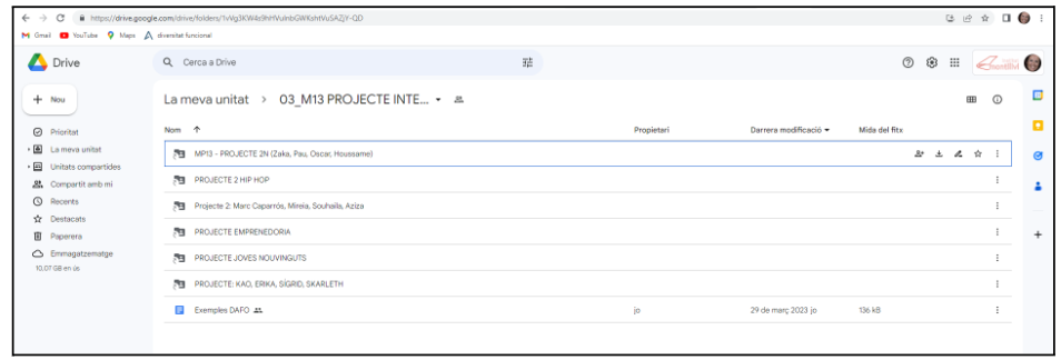 2) Seguiment del projecte. Per tal de poder fer el seguiment de la vostra activitat i que es puguin avaluar les competències del treball en equip és imprescindible que cada grup creï una carpeta al drive que hauran de compartir amb permís d’edició amb el professorat per tal que es pugui tenir accés en qualsevol moment a tota la informació i també per poder-ne anar fent un seguiment.