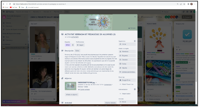 - El tauler del Trello on l’alumnat anirà penjant les tasques encomanades i on rebrà els avisos del seguiment per part de la professora d’aula, essent també l’espai de comunicació.
