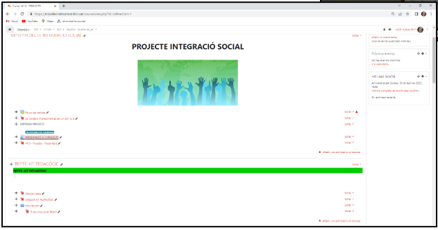 Amb aquesta activitat es demana a l’alumnat un procés cognitiu d’ordre superior (CREAR) ja que se’ls demana la creació dels acords de treball en grup i la creació de la planificació del seu projecte d’integració social.