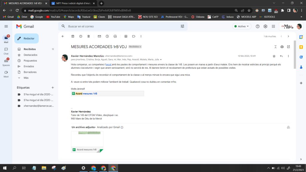 Evidència de comunicació entre docents mitjançant l’us del mail corporatiu del centre @lamerce.com