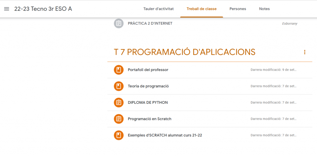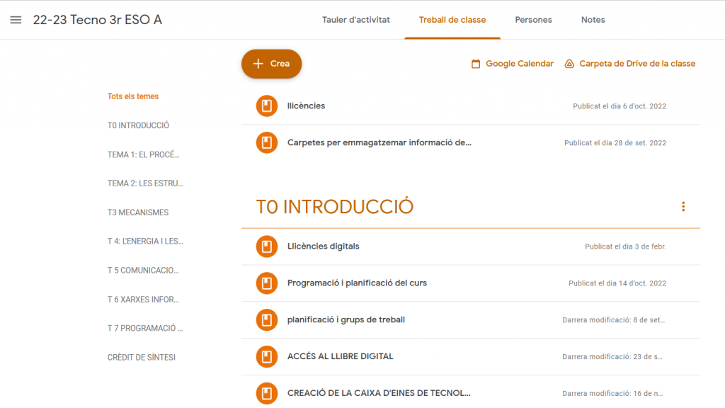 S’ha creat un tema al Classroom amb la unitat didàctica on treballem la present activitat:
