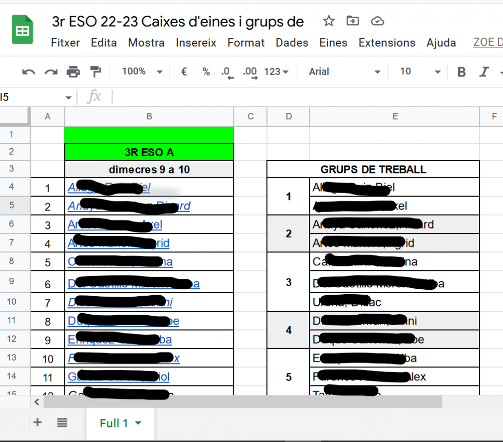 - Llistat de portafolis de l’alumnat en un full de càlcul Drive.