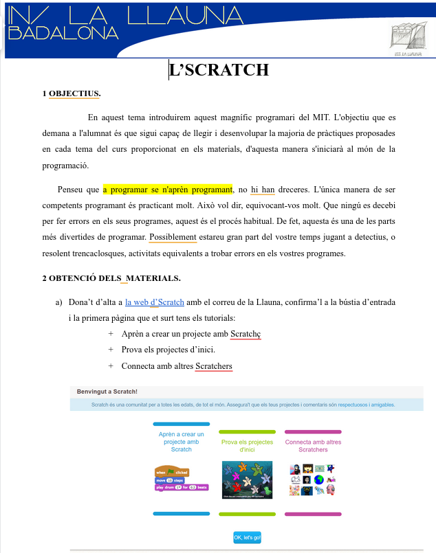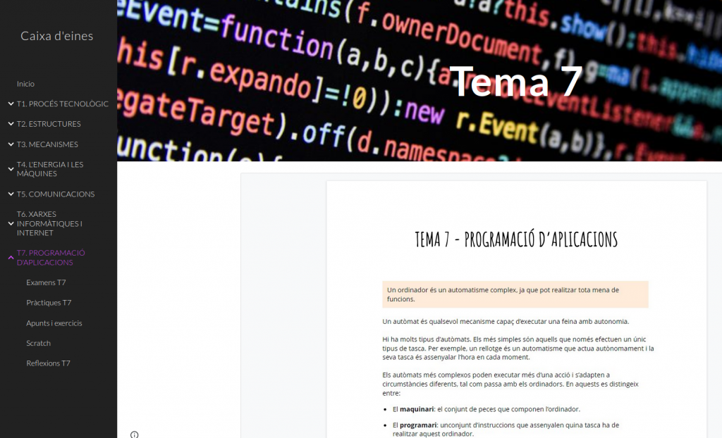 He seleccionat la unitat 7 de 3r de Tecnologia de l’ESO a l’INS La Llauna, anomenada Programació d’aplicacions, ja que considero que és la que millor s’adapta a la present tasca dins de les matèries que imparteixo per aplicar el que es demana a la tasca.