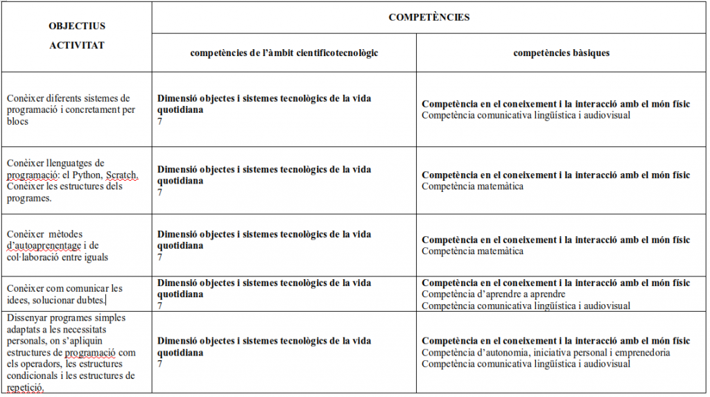 A la taula següent resumeixo els objectius d’aprenentatge i les competències que es treballen