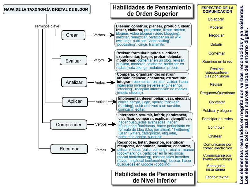 Observant la Taxonomia de Bloom relacionada amb l’àmbit digital que mostrem a la imatge: