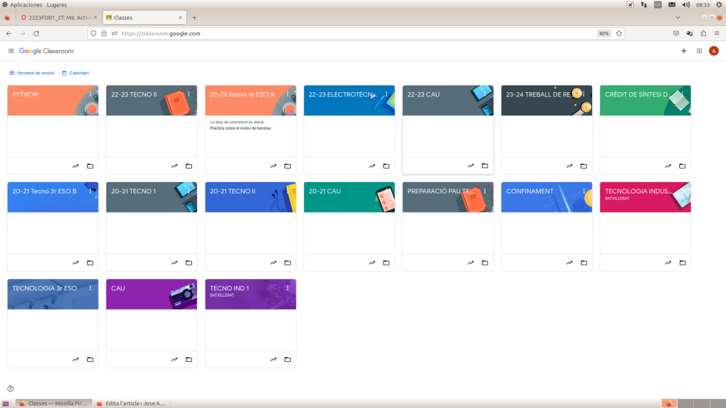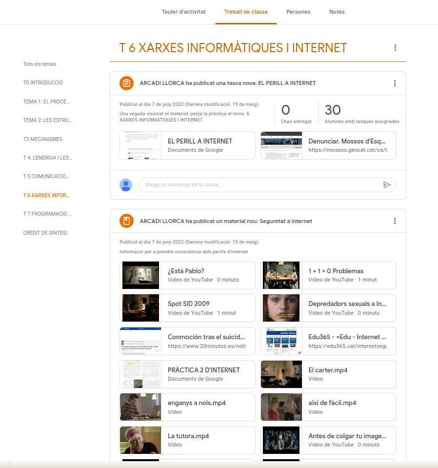 A continuació aportem les evidències de la posada en pràctica de l’activitat començant pel Classroom del professor que és el lloc on compartim l’activitat amb l’alumnat: