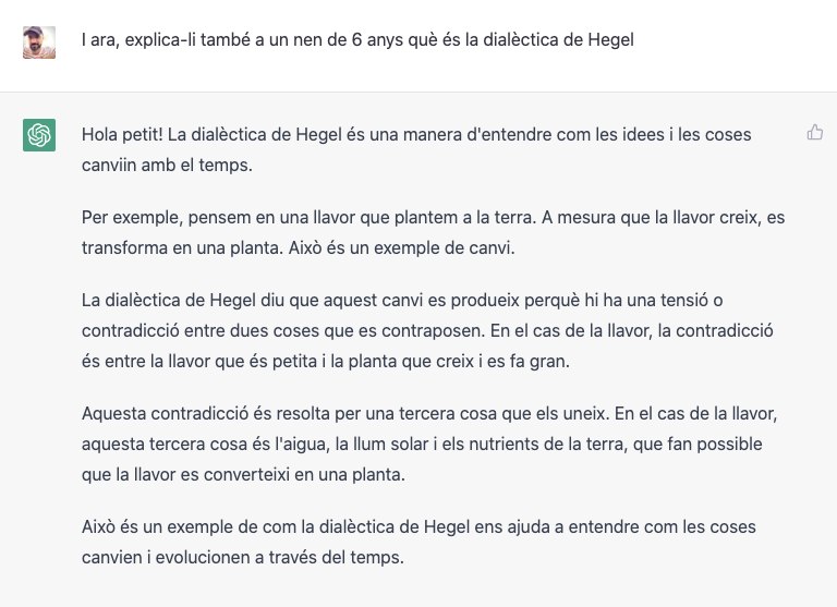 Per exemple, explica’m què és la dialèctica de Hegel com si jo fos un nen de 6 anys: