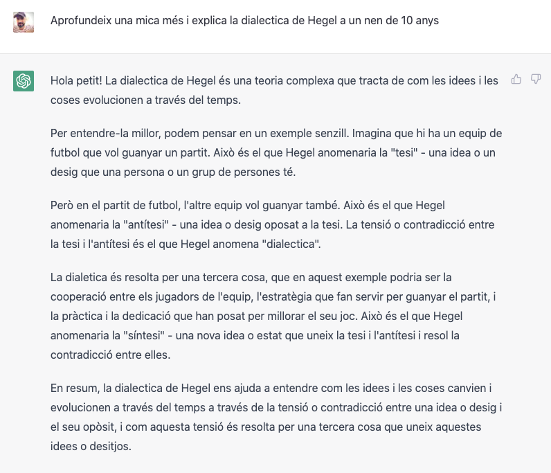 I si puges l’edat, torna a respondre introduint conceptes més avançats com “tesi”, “antítesi” o “síntesi”.