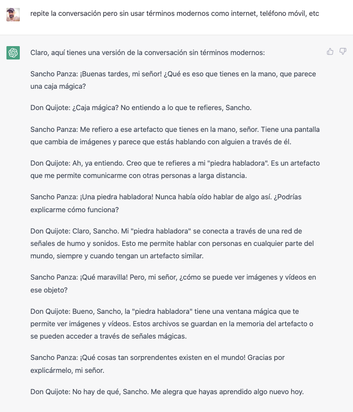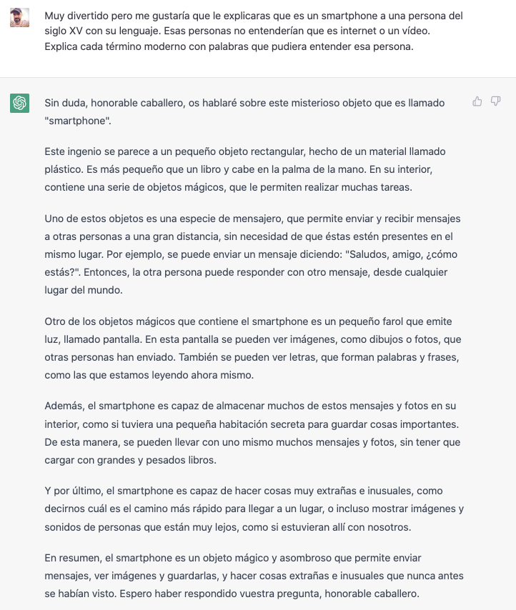 Una de les coses que em meravella del ChatGPT és la capacitat que té d’adaptar la conversa a un interlocutor imaginari que podem definir.