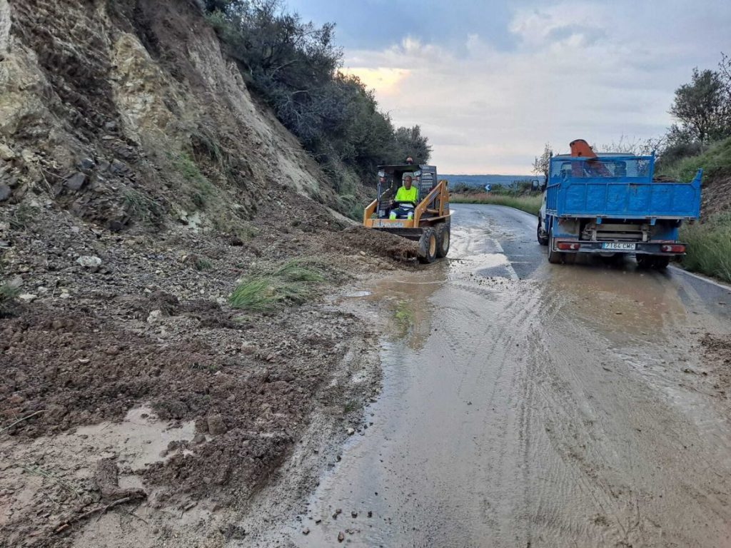 Entrada principal de Picamoixons des de Valls amb una esllavissada després del fort temporal del 4 de novembre.