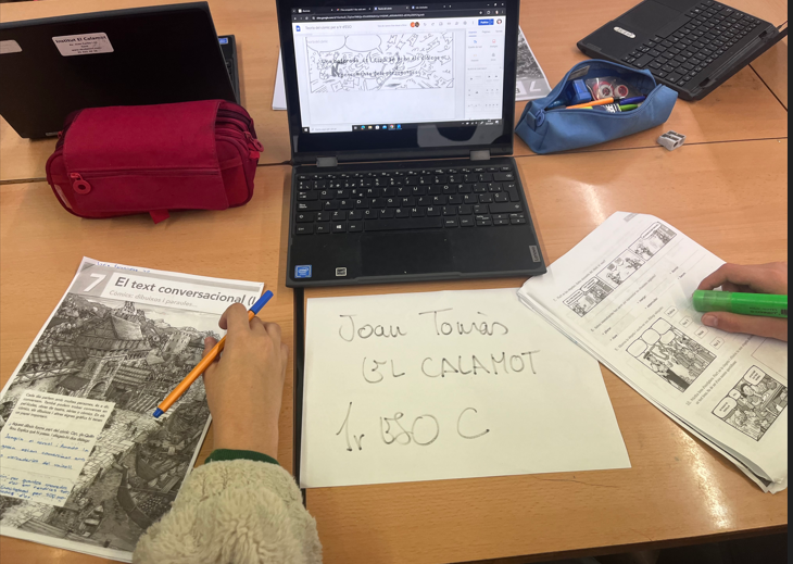 Estem treballant a l’aula la teoria del còmic amb un dossier fotocopiat on es defineix el còmic, s’explica què és un text conversacional, es defineixen els principals elements d’un còmic… Com a tasca final de la unitat els alumnes han d’elaborar un còmic sobre una criatura fantàstica protagonista d’alguna llegenda popular catalana. Per fer-ho també s’ajuden d’un document on hi ha una guia amb els passos a seguir per estructurar bé el plantejament i desenvolupament d’un còmic.