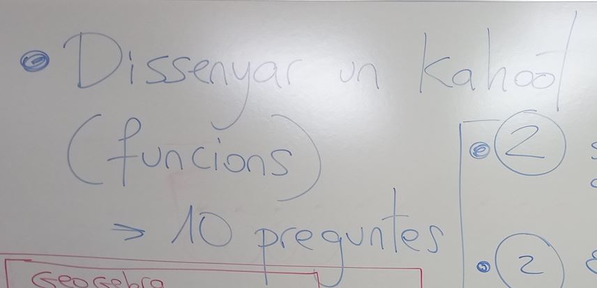 He decidit portar a l’aula una activitat digital col·laborativa dintre de l’assignatura de matemàtiques de 4t ESO. Aquesta activitat tindrà com a context la unitat didàctica d’Introducció a les Funcions. Consistirà en la confecció per parelles d’un kahoot amb 10 preguntes d’aquest tema (explicat prèviament a la classe). El temps estimat per fer aquesta tasca serà d’una sessió d’1 hora. Després que jo, com a coordinador de la tasca, hagi avaluat aquests treballs i els hagi donat el vist-i-plau, triarem tres d’aquests kahoots per sorteig i jugarem amb ells fent equips de tres persones. Els alumnes i les alumnes faran servir els seus dispositius mòbils i ens recolzarem en la pantalla blanca i el projector que tenim a l’aula.