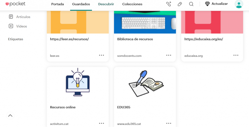 He començat ara a fer servir el Pocket ja que fins ara feia servir el Simbaloo, hem queden moltes webs per afegir: